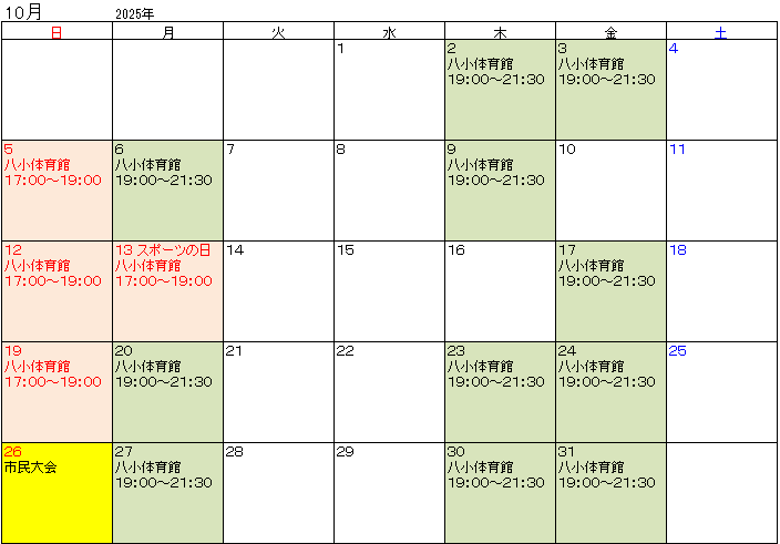 10月の予定