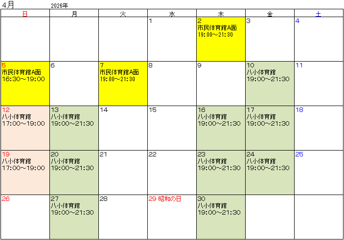 4月の八小の練習予定をサークルスクエアに入れました。とりあえず練習場所の予定が確保できたら日程を入れて行きますが、パラパラ予定入れて行くと見落としもでてくるのかと思うので、対応を考え中。